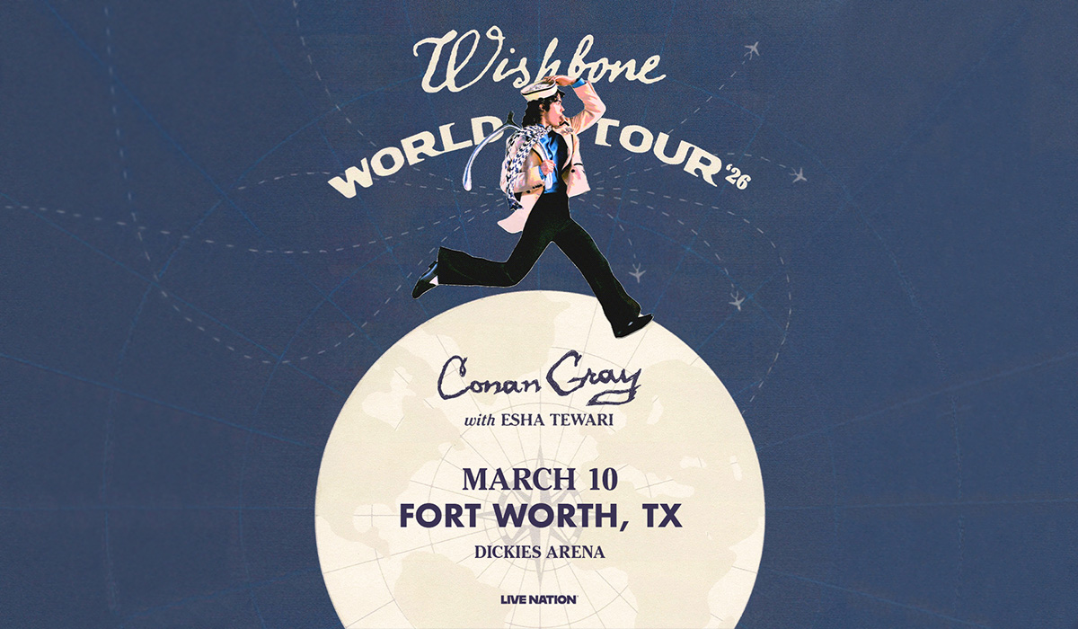 Multi-platinum singer-songwriter Conan Gray has announced his highly anticipated 2026 Wishbone World Tour with special guest Esha Tewari, in support of his critically acclaimed fourth studio album Wishbone (Republic Records). The 42-city global run will make a stop in Fort Worth at Dickies Arena on March 10.  The tour will showcase support from rising pop artist Esha Tewari across all dates.